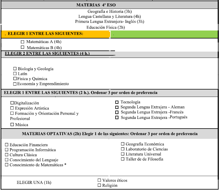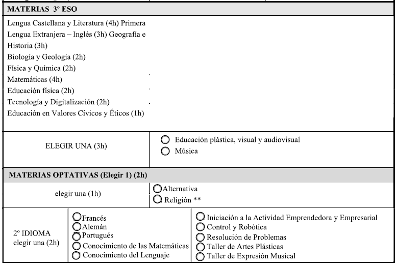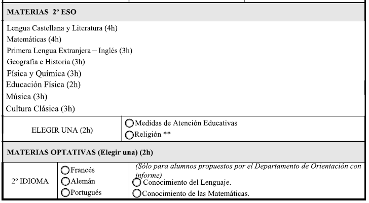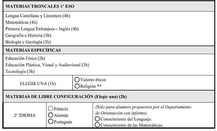 Asignaturas de los diferentes cursos de la Educación Secundaria Obligatoria.